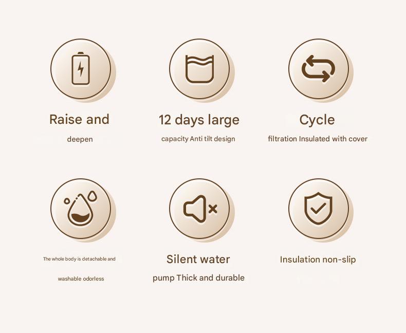 - Intermittent Dispensing Mode: Option to dispense water automatically every 30 minutes (Intermittent Mode), ideal for quieter environments or less active pets.